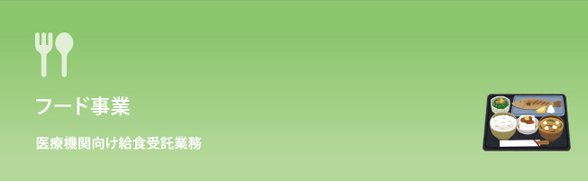 2005年11月より病院1件と給食委託契約を締結し、新事業をスタートいたしました。飲食業で培ったおいしく安全な食料を提供するというコンセプトと患者様本来の治療力を高めるべく「食」を通して医療機関のご支援をいたします。給食業務は事業を拡大していく所存です。
